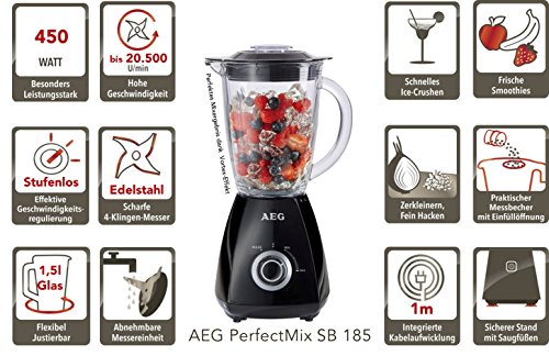 -. Title : AEG Standmixer PerfectMix SB 185 (450 Watt, bis zu 20.500 U/min, Ice Crush, 1,5 L Glaskrug, 4 Edelstahlmesser) Schwarz