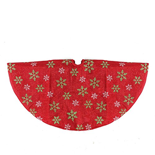 - Red Snowflake Printed Mini Tree Skirt 20" Decorative Red Metallic Green and Red Snowflake Mini Christmas Tree Skirt