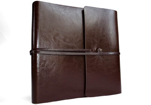 Pachino Medium Chocolate Handmade Recycled Leather Wrap Photo Album, Classic Style Pages (22cm x 22cm x 4cm)