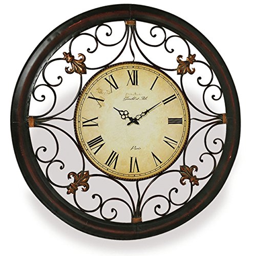 -. Feature : FRENCH COUNTRY STYLE A timeless and beautiful display piece for your home, our French style Fleur de Lis clock infuses vintage rustic elegance wherever it is placed. The artfully designed clock face is surrounded by robust metal scroll work that is detailed with Fleur de Lis decoration and surrounded by a bronze perimeter band. Embellished with words in elegant script that read, Gerald et Fils, Paris, makes it the perfect focal point for your spaces. / PRECISE TIME the high quality clock motor delivers the exact time, every hour on the minute and everyday. Powered by 1 AA battery, (not included) this clock has an easy to use hanger on the back. / LARGE SIZE Over 3 Ft in Diameter, well sized, this exquisite clock measures as follows: 36¼ inches in diameter with a 1 inch profile and weighs 9 1/2 pounds. / WARM AND INVITING A masterpiece of soft antiqued tones, the clock face graphic depicts easy-to-read numerals around the clock face. Rimmed on the inside by marked rings that beautifully show the minute intervals, Fleur de Lise Clock is casual, warm and inviting. / AN IDEAL PRESENT for lovers of vintage French Country Style, this clock comes packaged in a sturdy shipping box. It's perfect to celebrate birthdays, weddings and more. So gorgeous, you'll want to keep it at home for yourself. Enjoy! By Whole House Worlds