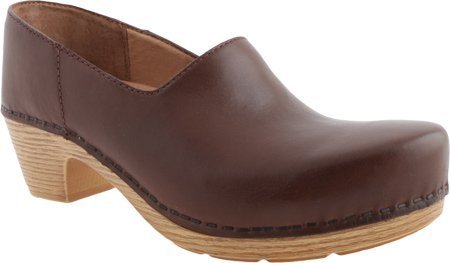 Treat yourself to the minimalist style of the Dansko Marisol clog, from the stapled Tivoli Collection. A modern take on the classic professional clog, this women's slip-on, closed-back shoe is crafted from easy-care, full grain leather with a contoured, leather-topped footbed to lend energizing arch support. Molded for traction, the wood-look polyurethane bottom offers classic clog appeal.Feature
