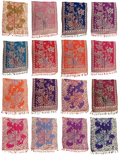 (WholesaleSarong)/Accessories/Cold Weather Accessories/DIRECT FROM USA/12 scarves floral paisley gold thread embeded pashmina shawl wrap stole Neck warmer Scarf Eveni...