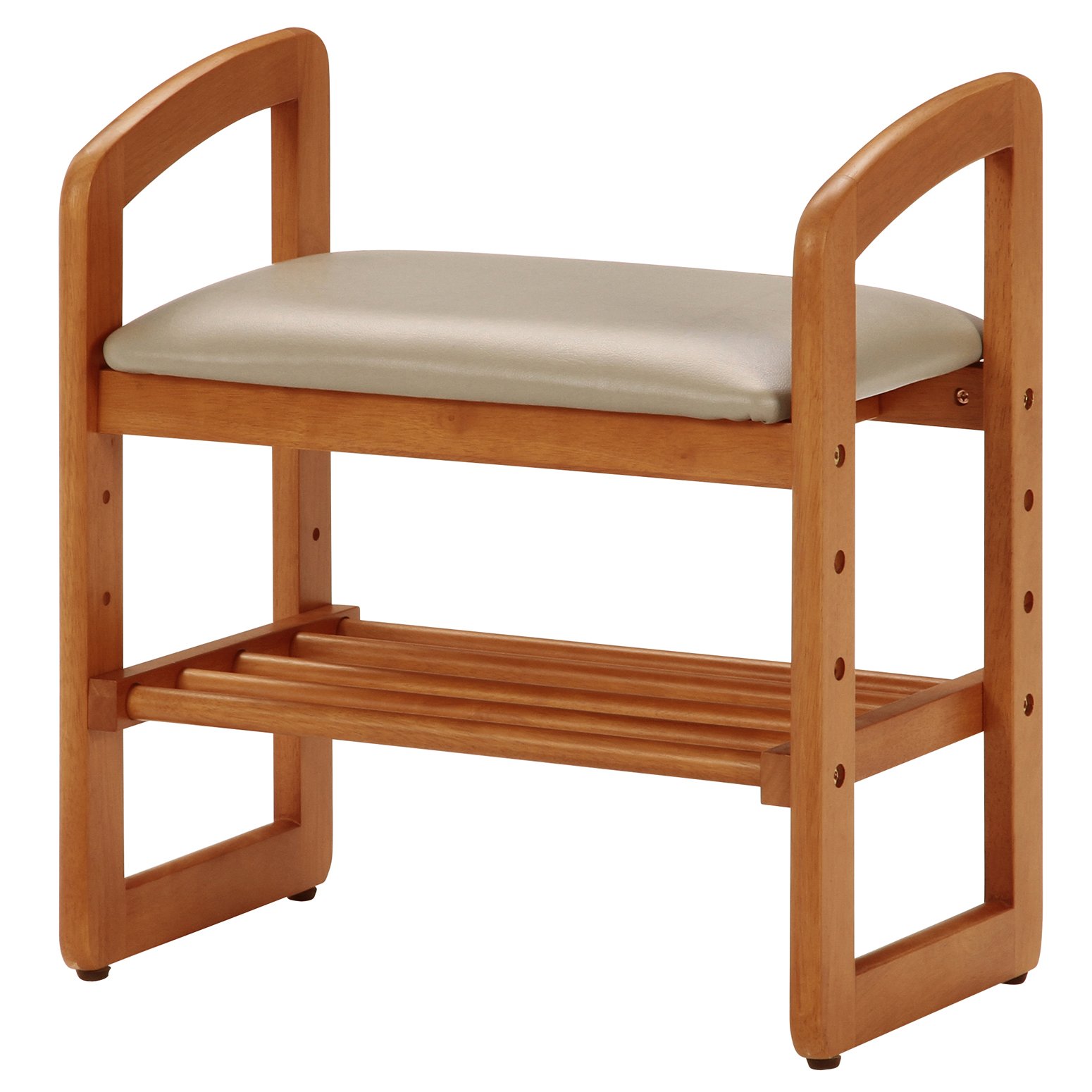 Below the seating surface, there is a storage shelf where a small baggage and shoes can be placed.