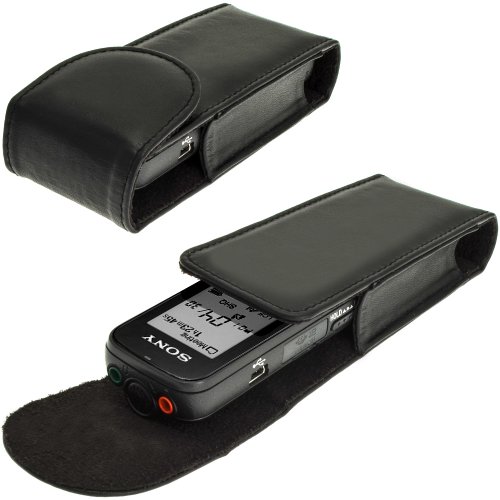 iGadgitz Black Genuine Leather Case Cover for Sony ICD-PX312, ICD-PX333 & ICD-PX440 Digital Voice Recorders