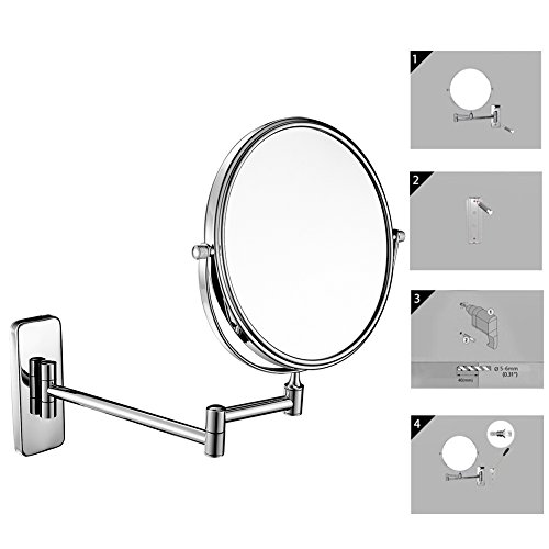 GuRun Wall Mount Makeup Mirror with 10x Magnification 8-Inch Double Sided Vanity Mirror,Chrome M1406(8in,10x)