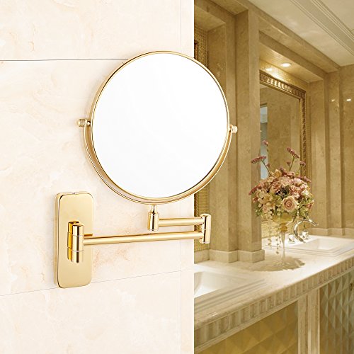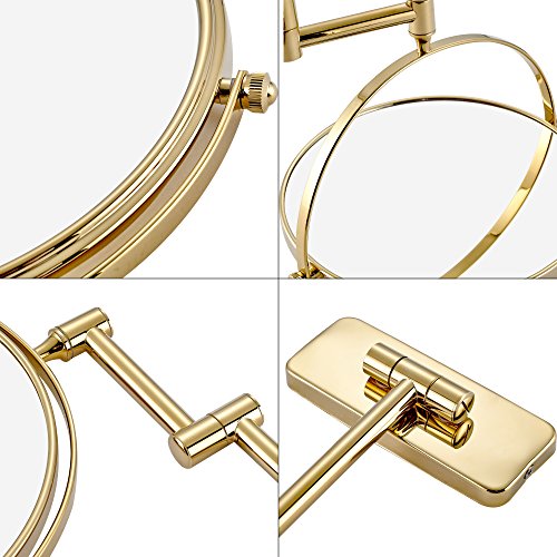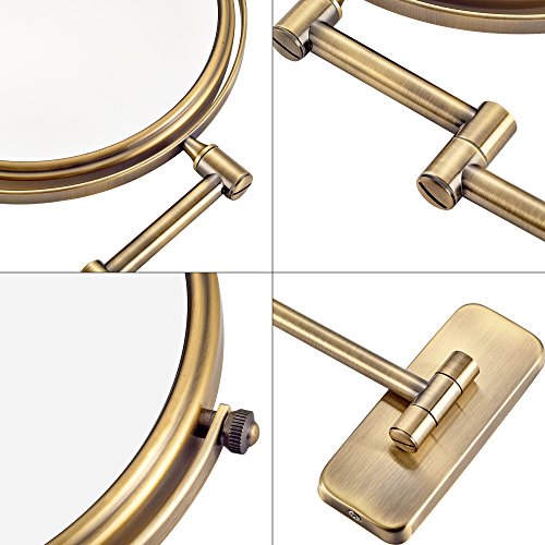 GuRun 8-Inch Antique Double-Sided Wall Mounted Makeup Mirror with 10x Magnification,Gold Finish M1406J(8in,10x)