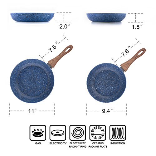 Features and Benefits: Perfect for whipping up all kind of recipes, this 2pcs fry pans set from Michelangelo is a must-have to release your Inner Chef. Everything you need to prepare delicious stir-fry meals and more, is in this Non-stick 2-Piece fry pan Set. Made of thick aluminum material, the fry pans heats quickly and evenly for perfect results. Its granite nonstick surface promotes healthy cooking by requiring less oil.