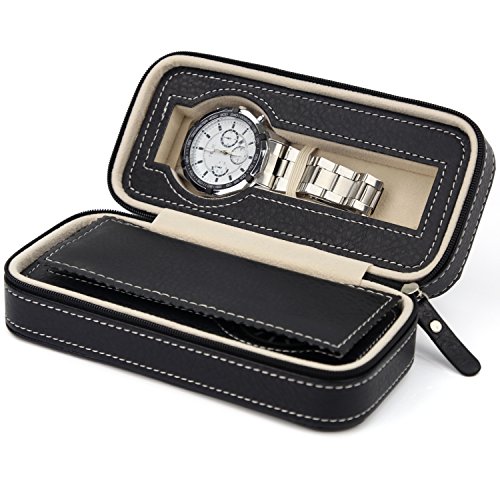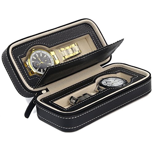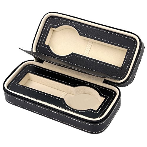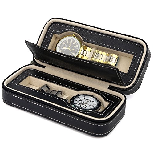 Watch Box Display Case, PU Leather Watch Box Organizer for Men Women Travel Watch Box (2 Slot, Black)