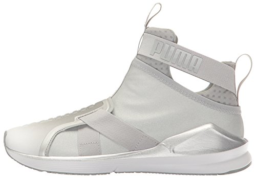 PUMA Women's Fierce Strap Metallic Wn's Cross-Trainer Shoe, Silver White, 6.5 M US