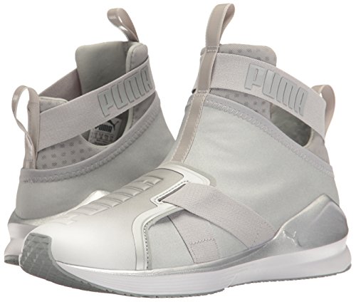 PUMA Women's Fierce Strap Metallic WN'S Cross-Trainer Shoe, Puma Silver-Puma White, 9.5 M US