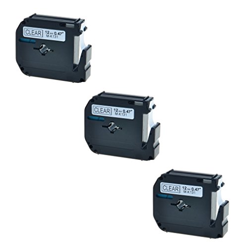 SuperInk Compatible 3 PK Black on Clear M-K131 MK131 Label Tape For Brother P-Touch PT-100 PT65