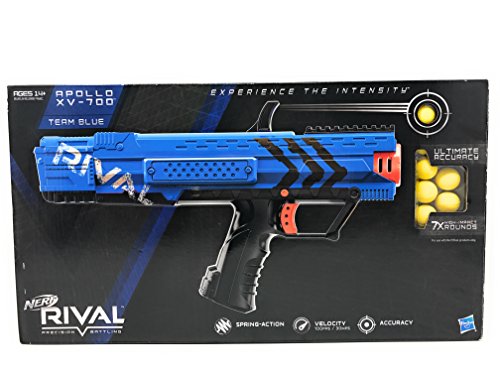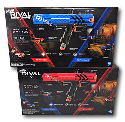 -. Binding : Toy -. Brand : Nerf -. Feature : Nerf Rival Precision Battling Apollo XV-700 Red and Blue, Nerf Rival Face Mask Red and Blue, and Nerf Rival 25X High Impact Rounds Bundle / Nerf Rival Precision Battling Apollo XV-700 (1) Red and (1) Blue / Nerf Rival Face Mask (1) Red and (1) Blue / (2) Nerf Rival 25X High Impact Rounds / Ages 14+ -. IsAdultProduct : 0 -. Label : Hasbro -. Manufacturer : Hasbro -. ProductGroup : Toy -. ProductTypeName : TOYS_AND_GAMES -. Publisher : Hasbro -. Studio : Hasbro -. Title : Nerf Rival Precision Battling Apollo XV-700 Red and Blue, Nerf Rival Face Mask Red and Blue, and Two Nerf Rival 25X High Impact Rounds Bundle