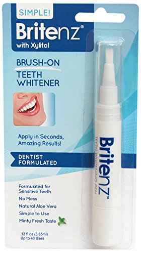 ReleaseDate : 2014-07-01 Studio : OTC Liquids, LLC Publisher : OTC Liquids, LLC Binding : Health and Beauty Product Description Britenz contains the same powerful whitening ingredient (hydrogen peroxide) along with our unique formula containing natural ingredients to help the gel adhere to your teeth as your teeth are gently whitened. There is no need to rinse and Britenz leaves your teeth clean and minty fresh. Just use Britenz twice daily after brushing. 0