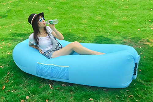 - Quick and easy set up in under 30 seconds with no pump or tools needed. - Portable and easy to carry with the added travel bag. - Strong and durable, lightweight waterproof and can be used as a wonderful pool float. - Conveniently made with 3 different sized pockets to store anything you may bring. - Peg included to help hold your lounger in place.