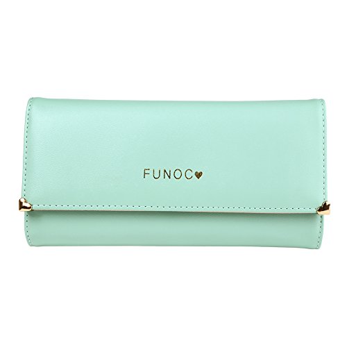FUNOC Synthetic Leather Women Wallet Purse Credit Card Clutch holder Case (Light Green)