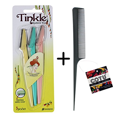 *Authentic Genuine* Tinkle Eyebrow Razor for Beautiful Eyebrows (3 pcs) + COTU (R) Hair Comb (1 pcs)