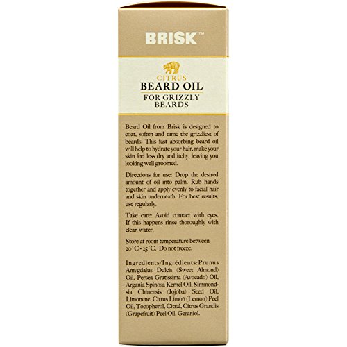 - HYDRATING FORMULA Brisk Beard Oil is a mix of nutrient-rich Sweet Almond, Avocado, Argan, & Jojoba oils that soften, treat, and tame even the grizzliest of beards. It's non-greasy, ultra-light formula absorbs quickly for stress- & mess-free grooming.