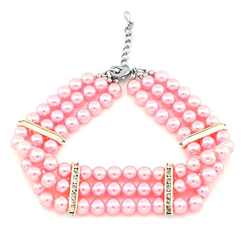 -. Title : SMALLLEE_LUCKY_STORE 9.5"-11.5" Pet Puppy Dog Cat Vintage Three-Row Necklace, Small, Pink
