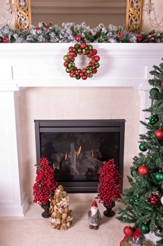 MATCHES ANY DECOR THEME: Beautifully decorated with orbs, and ornaments, this wreath is sure to impress. With a red glitter theme, this wreath is sure to shine, impress, and match any of your existing Christmas Decor