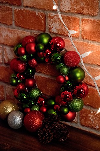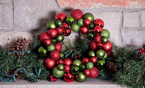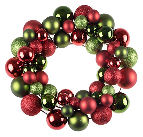 Christmas Ornament Wreath by Clever Creations | Bright Red & Green | Festive Holiday Décor | Classic Theme | Lightweight Shatter Resistant | Great for Indoor/Outdoor Use | 12" Diameter