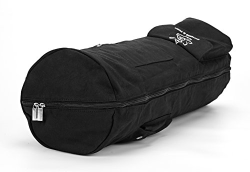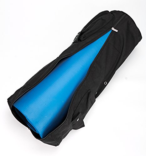 FITS MANDUKA MATS AND STANDARD MATS: This yoga mat bag fits a standard yoga or exercise mat up to 26.5”-wide, 1/2" thick and 7” in diameter when rolled up. FEATURES: Includes an ADJUSTABLE shoulder strap. The full zipper makes it easy to insert and remove your yoga mat. The zip pocket easily fits your phone, keys, and cards.