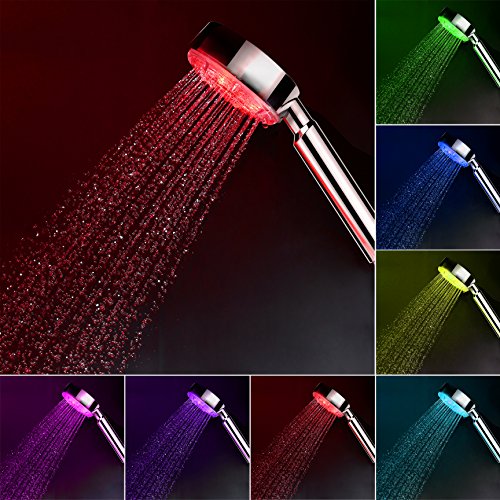 Homdox stainless steel LED Shower Head Color Changing 7 Colors Gradual Changing for Bathroom (Silver)