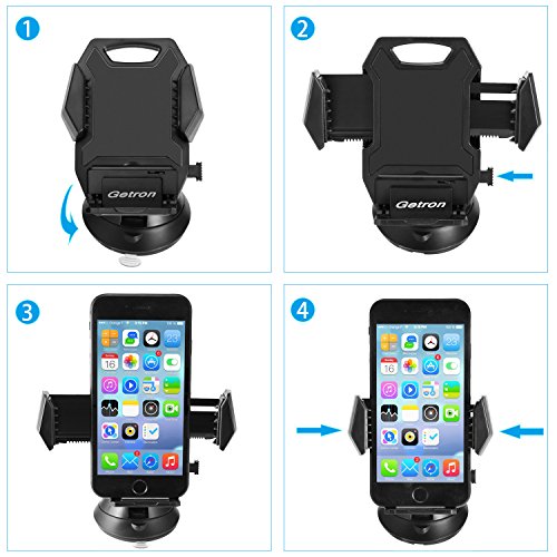 Car Mount Holder, Getron Windshield Dashboard Universal Car Mobile Phone Cradle for iPhone 7 Plus 7 6S Plus 6S SE 5S 5C Samsung Galaxy S7 Edge S7 S6 Note 5 4 LG G5 G4 and Most Smartphones