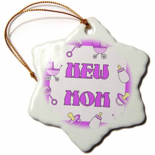 3dRose LLC New Mom Gifts Purple Baby Girl 3-Inch Snowflake Porcelain Ornament