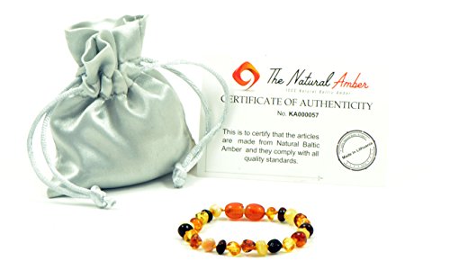 -. Title : Amber Teething Bracelet / Anklet - 5.5 inches (14 cm) - Unisex - Hand-Made from Genuine Baltic Amber Beads