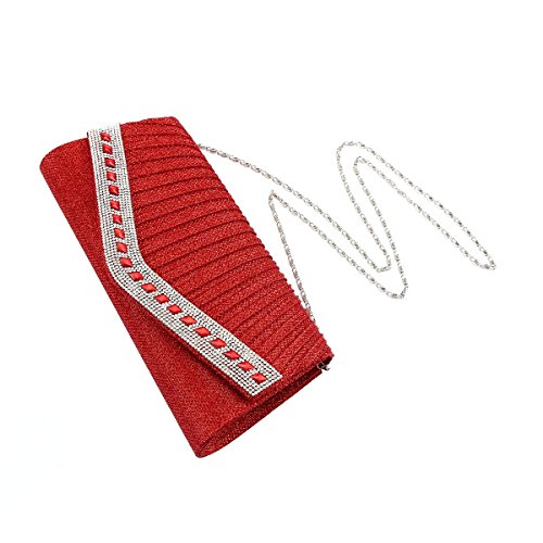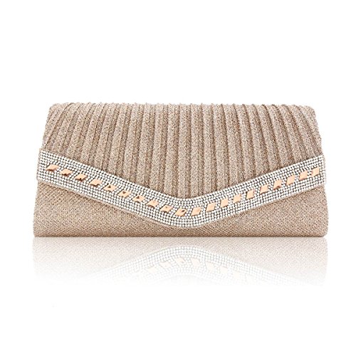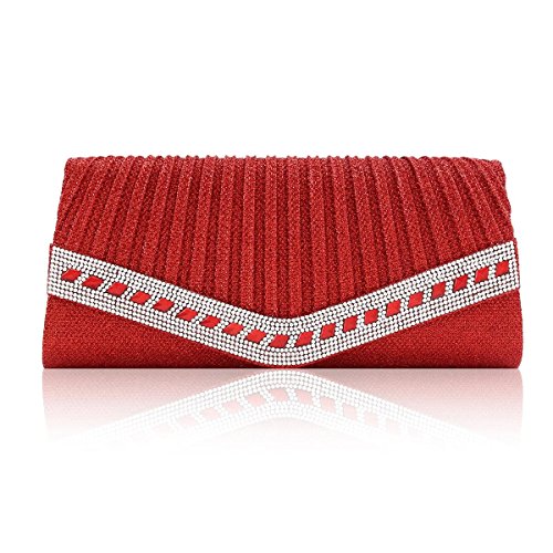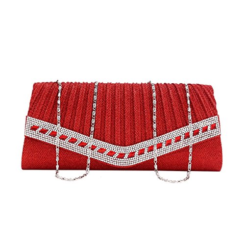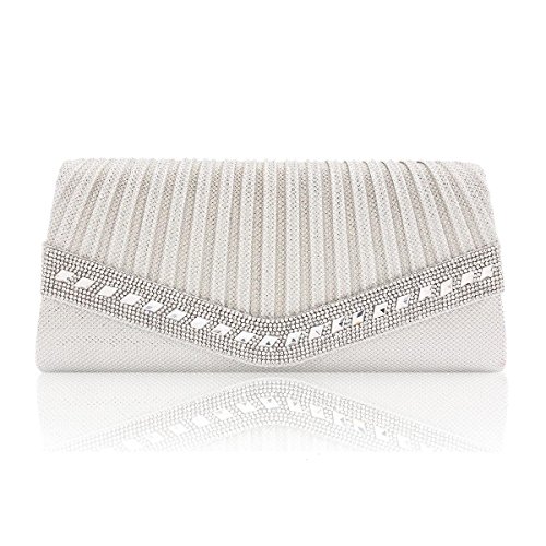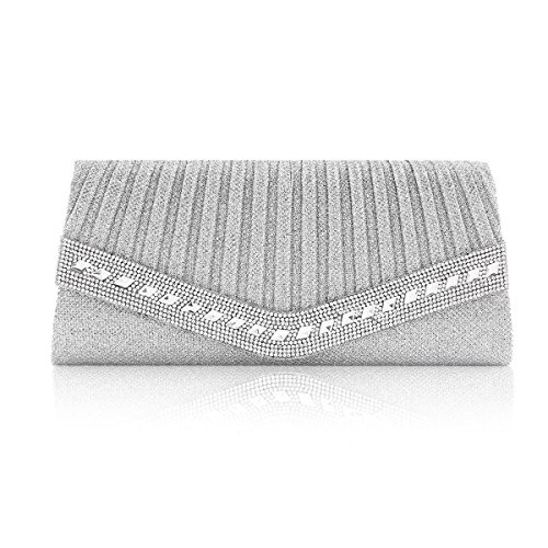Product Description This beautiful clutch features a classic pleated design with a dazzling crystal trim. Pair this sparkling clutch with your elegant formal dress and you will stand out from the crowd at your special event. Inside can easily fit a cell phone, wallet, compact mirror, lip gloss, and a pack of gum. Conveniently, you can spend the night hands free with the detachable silver chain that is included.Measurement is app 27x12x4.5cm(10.63x4.72x1.77inch) Chain 120cm(47.24 in) . 0