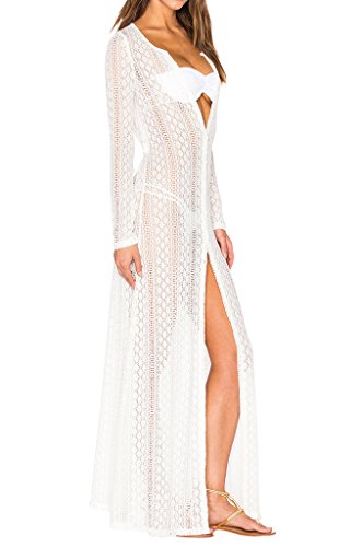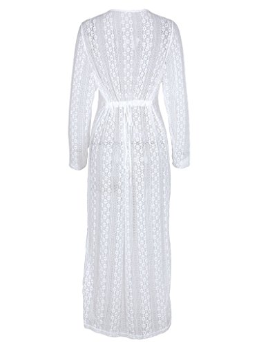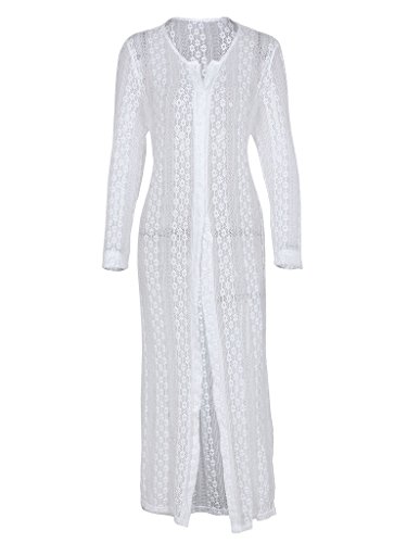 Title : Ayliss Women's Lace Long Kimono Cardigan Maxi Bikini Swimsuit Cover Up,White