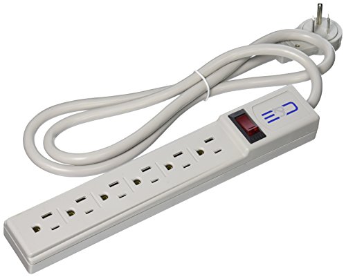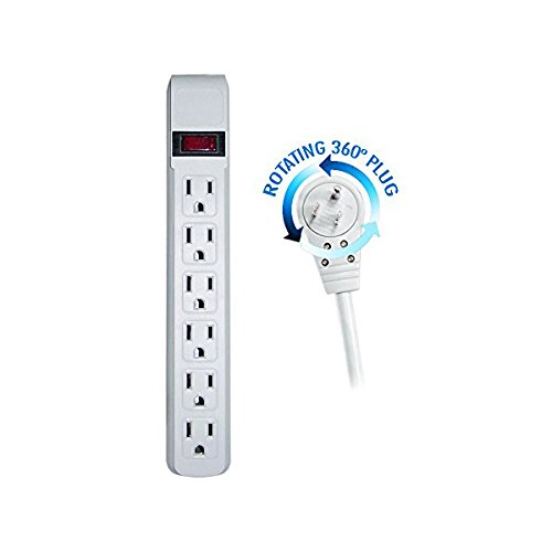 C&E CNE75976 4-Feet Surge Protector Flat Rotating Plug 6 Outlet Horizontal Outlets Plastic Power Cord, Gray