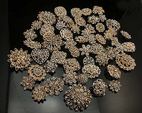 Lot 10pcs Silver/gold Color Sparking Wedding Bridal Crystal Brooch Bouquet Kit (gold)
