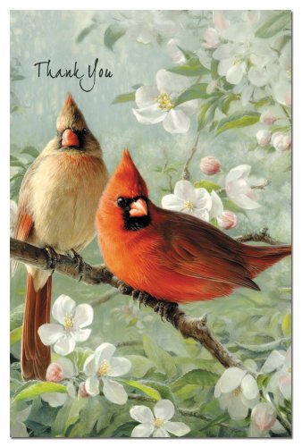 Tree-Free Greetings ECOnotes Thank You Card Set, 4 x 6 Inches, 12-Count Cards with Envelopes, Orchard Cardinals (94686)
