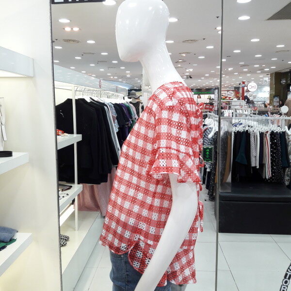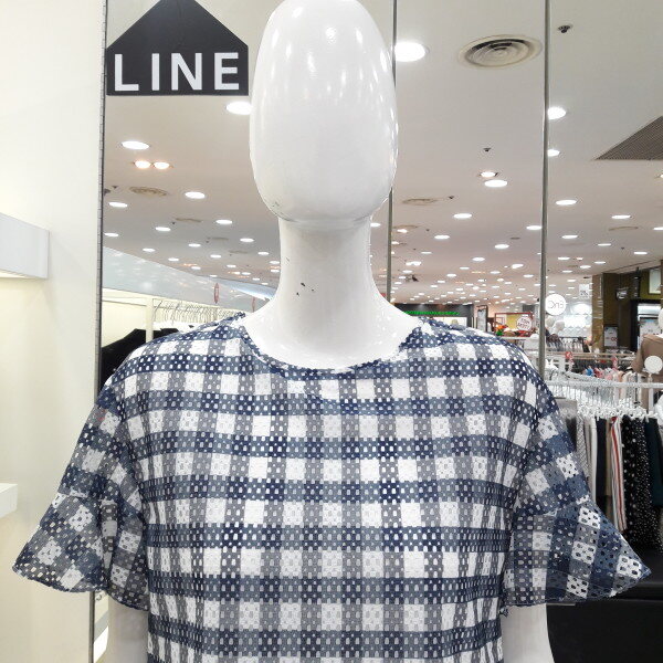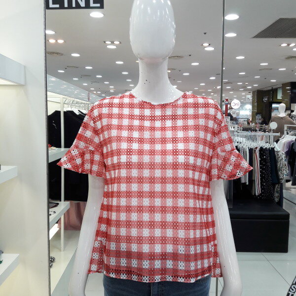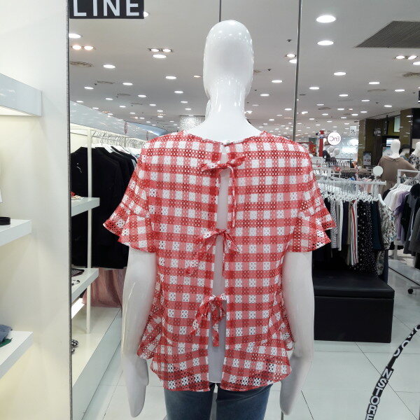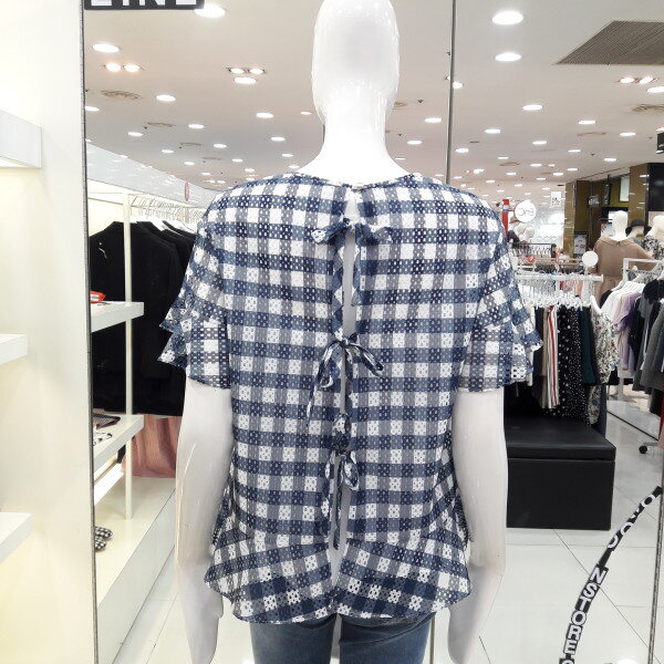 18년 여름 신상 큰체크 패턴의 시원해보이는 블라우스입니다 소매프릴과 밑단 프릴이 귀엽고 여성스러운 스타일입니다 청바지 스커트 반바지에 다 잘 어울리는 아이템입니다
