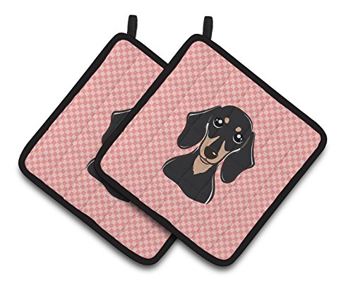 Caroline's Treasures Checkerboard Pink Smooth black & Tan Dachshund Pair of Pot Holders BB1215PTHD, 7.5HX7.5W, Multicolor