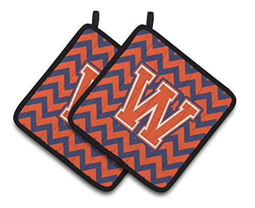 Caroline's Treasures Letter W Chevron Orange & Blue Pair of Pot Holders CJ1042-WPTHD, 7.5HX7.5W, Multicolor