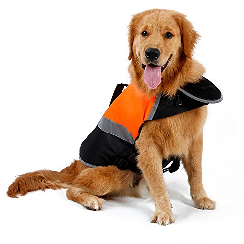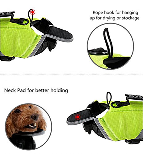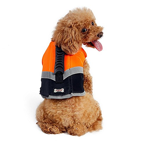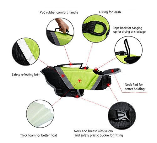 -. Feature : SAFETY SWIMMING: Dogs love to swim and we need to keep them safe. This Life Jacket makea comfortable and secure in the water. / ATTENTION COLOR: Whether your dog near the shore or plays in the waves, this dog life jacket would be noticed. Boasting bright orange and green color and sleek reflective brim, you¡¯ll be able to identify your dog in and out of the water quickly. / FEATURE: This dog life jacket is constructed with extra durable ripstop material that provides comfortable buoyancy in the water, A front neck float helps keep their head and neck above the water better. / FIT SIZE:Neck and breast with velcro and safety plastic buckle for fitting.All shapes and sizes dogs. Whether your dog is short or long,fat or thin, there¡¯s a life jacket that¡¯s perfect for it.Please choose a size form size chart that supports your dog and fits their swimming needs. / FUNCTION:Whether your dog is a killful water master or first swim, This dog life jackets help them go further and play longer.