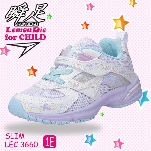 お子様のシューズは足長だけではなくて足囲も重要!!可愛らしい色合いと蝶のデザインが、おしゃれな女の子の足元にピッタリ。足にフィットする瞬足レモンパイで、さらに速く走っちゃおう♪内側かかと部分に名前スペースがあります。 |