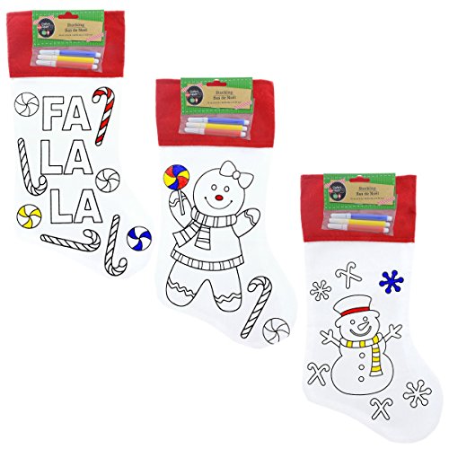 3 Pack: Christmas House Crafter's Square Color-Your-Own Polyester Christmas Stockings