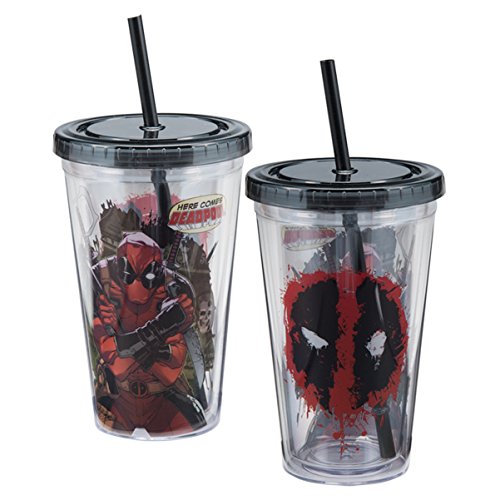 Vandor 26115 Marvel Deadpool 18 Ounce Acrylic Travel Cup, Red/Black