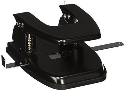 Heavy duty two-hole punch drills 1/4" holes through up to 20 sheets of 20 lb. paper at a time