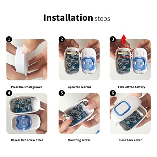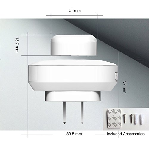 Includes 1 plugin receiver unit and 1 remote transmitter button, double sided sticker, anchors, screws, and battery for remote transmitter.