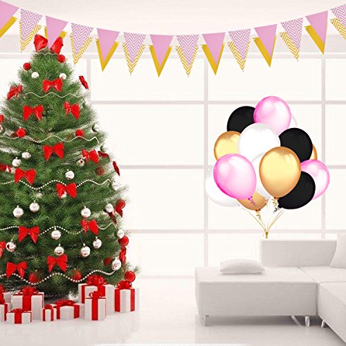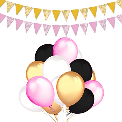 -. Title : Balloons Party Decorations Supplies,100 Ct 12 ''Latex Party Balloons (Gold, White, Pink, and Black Colors),2-Pack Gold Pink Vintage Style Pennant Banner by Home Kitty