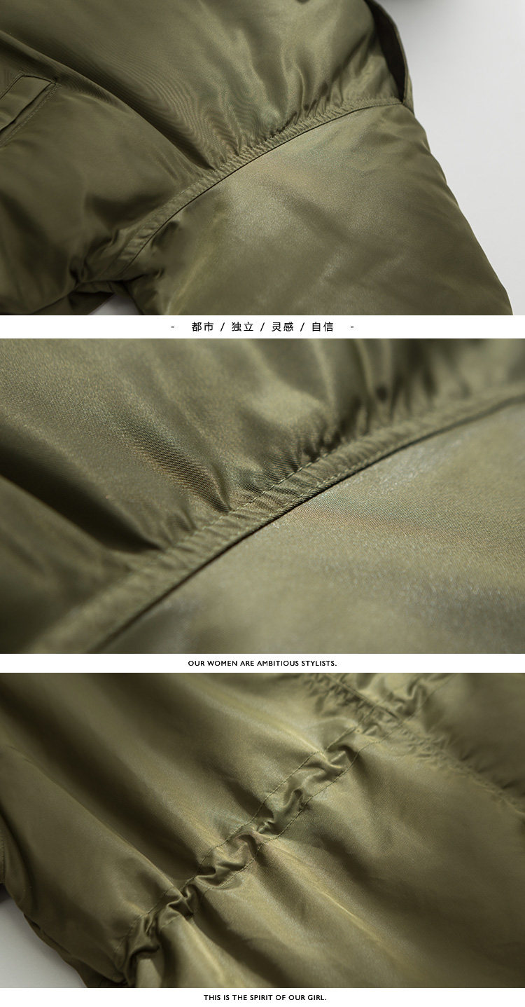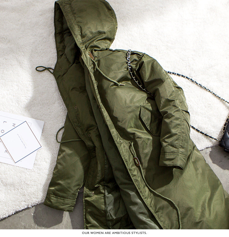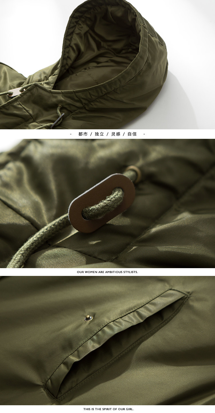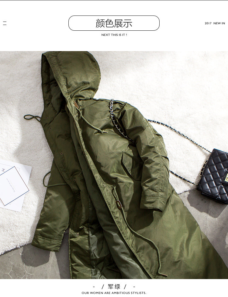| 面 料:锦纶里 料:100%聚酯纤维 胆布: 聚酯纤维 填充物:白鸭绒(含绒量90%)鸭绒克重:XS S M L 262g 267g 272g 277g颜 色:军绿 |