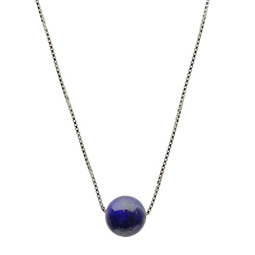 -. Feature : 0.39" (10mm) wide blue lapis (dyed) stone round focal bead / Solid 925 sterling silver chain, imported directly from Italy / Chain hallmarked 925 ITALY
