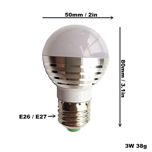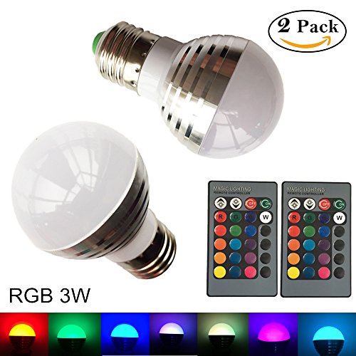 - RGB light bulbs: 16 colors can transform; Base type: E27/E26; Power: 3W; Voltage: 85-265V; Material: PC, aluminum; Energy saving, environmentally friendly and easy installation. Long life.