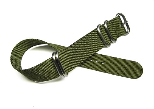 -. Title : TIMEWHEEL 20mm Premium Zulu 4 Ring Military Green Nylon Watch Band Strap