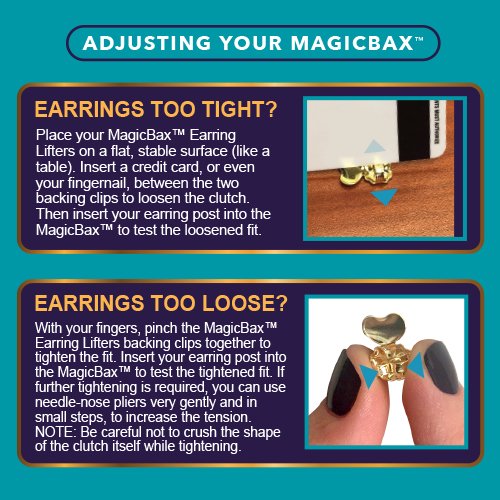 INCLUDED: 2 Pairs of 18K Gold Plated Magic Bax Earing Lifters and a Jewelry Case to hold both pairs