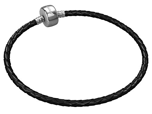 - Title : Timeline Treasures Real Leather Stainless Steel Starter Charm Bracelet European Style Fits Pandora Barrel Clasp FREE Charm - Black